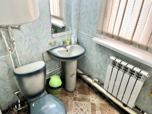 В доме три жилые комнаты,просторная кухня, сан. узел в доме. Канализация - центральная! Большая отапливаемая веранда соединяет дом с котельной( есть как твердотопливный котел , так и электрический) и баней. Баня теплая всегда, оборудована душем с горячей водой.