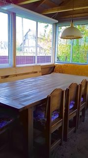 На участке имеется большая закрытая беседка с местом для барбекю, где можно отдохнуть на свежем воздухе.