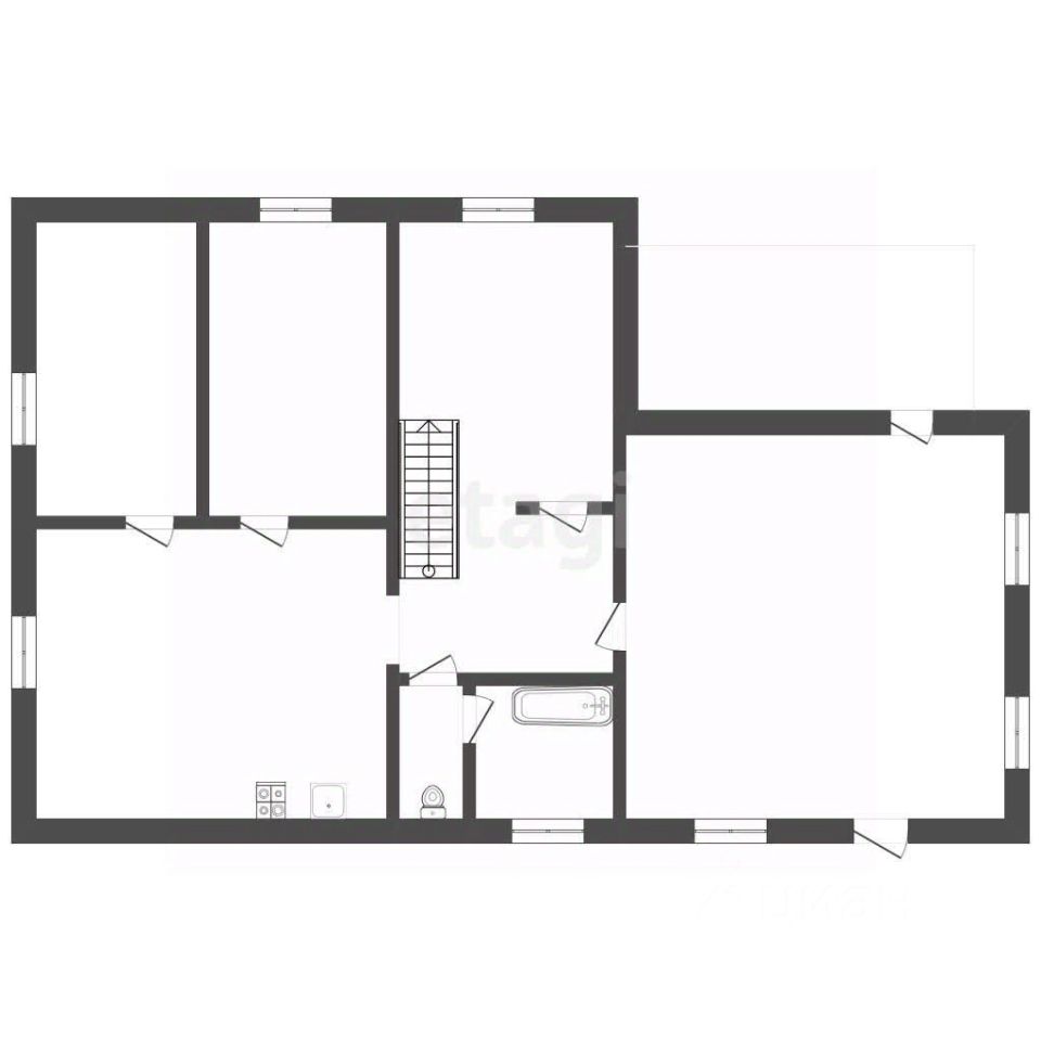 Второй уровень жилые помещения - просторная кухня-гостиная и три спальни, раздельный санузел, установлены межкомнатные перегородки из ГКЛ на металлокаркасе. Отопление разведено частично. Перекрытие второго уровня по деревянным балкам. Стены второго уровня ж/б блоки, пеноблоки, кирпич.