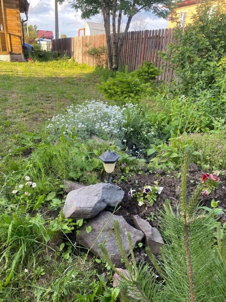 Участок ровный, расположен в живописной местности, что обеспечивает тишину и приватный отдых на природе. Все посадки имеются, также есть яблони, кустарники, смородина, вишня и др. В шаговой близости находится пруд "Альпийская горка", парковочное место для авто.