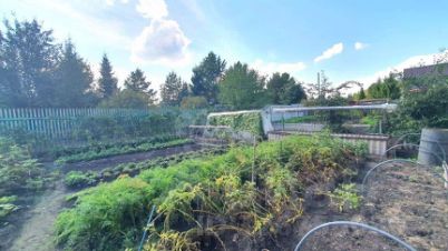 Дополнительные постройки: беседка, теплица. Также предусмотрено место для парковки автомобиля.