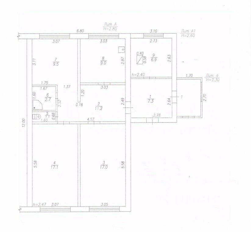 Высота потолков: 2,7 м