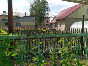На участке хозпостройки (стайка, пристайка), баня и гараж из шпал. Все обшито сайдингом.