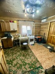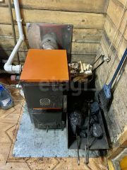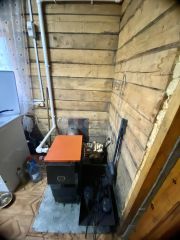 Сам дом со шпал, утеплен минватой и обшит сайдингом. Крыша покрыта металлочерепицей. В сени вынесен котел отопления.
