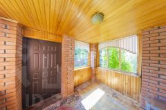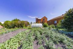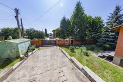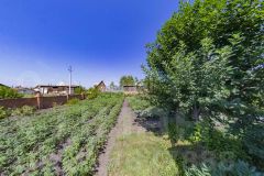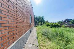 Территория огорожена кирпичным забором, на участке много плодовых деревьев, ягоды, цветов, хвойных деревьев и т.д.