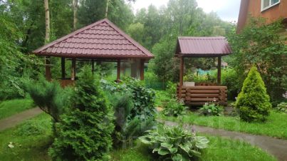 Участок 9 сот.. Удачно расположен в не транзитной аллее. При этом недалеко от магазинов и автобусной остановки. Участок зонирован. Перед домом - парковка, огород, 2 теплицы, газон. За домом очень удобно расположена приватная зона отдыха с баней , беседкой, площадкой под бассейн. На участке огромный, плодоносящий кедр, черемуха, ели, березы, яблоня. Участок граничит с соседями только с 2-х сторон. По границе приватной зоны- лесок, ручей.
