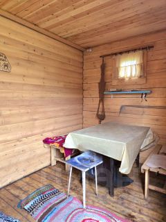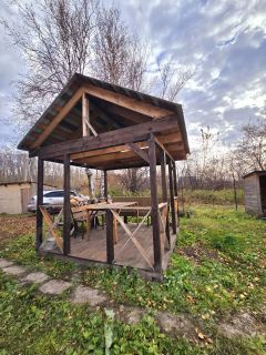 Территория дома составляет 15 соток. На ней расположена беседка размером 33 метра, новая баня из бруса размером 34 метра, внутри обшитая имитацией бруса, а также печь, сделанная под заказ. Также на территории есть углярка с разделением под хозяйственный блок.