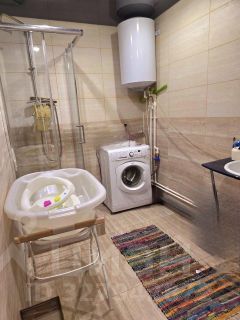 На первом этаже просторная ванная комната с душевой кабиной, туалетом, раковиной и бойлером на 100 литров. Стены и пол выложены кафелем, а потолок натяжной. На первом этаже также есть просторный коридор, зал и большая кухня.