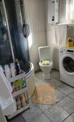 Санузел совмещённый в доме с душевой кабиной. В ванной комнате тёплый пол . Имеется небольшое окно , что делает санузел светлым . Бойлер в подвале , резервный накопитель воды на 3000 л.