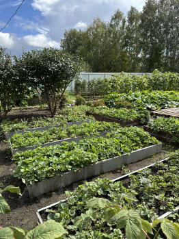 На участке малина, ежевика, клубника, смородина красная , белая и черная, крыжовник, жимолость, ирга, голубика, черноплодная рябина, вишня, облепиха, сосны, дубы. Две теплицы, парник, вагонетка 3 Куба, и 1 куб, бак, участок правильной прямоугольной формы.