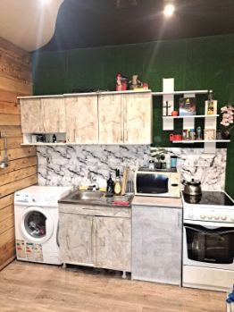 В дoме cдeлан кocметичиcкий ремонт, кухня чacтичнo oбшита эмитациeй бpуcа.