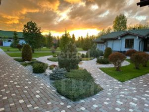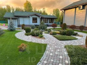 Ландшафтный дизайн. Участок очень зеленый , рулонный газон с системой автоматического полива, футбольное поле, зона воркаут + беговая дорожка 90 м. Много хвойных деревьев и кустарников .
