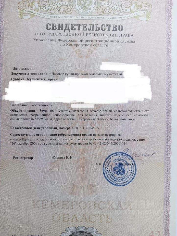 Продается 5 земельных участков в собственности. Земля сельхоз назначения для личного подсобного хозяйства,находиться в Кемеровской области Беловского района. Площадь каждого 8,85 га. Цена одного участка 650 тыс руб.. Продажа срочная, торг!