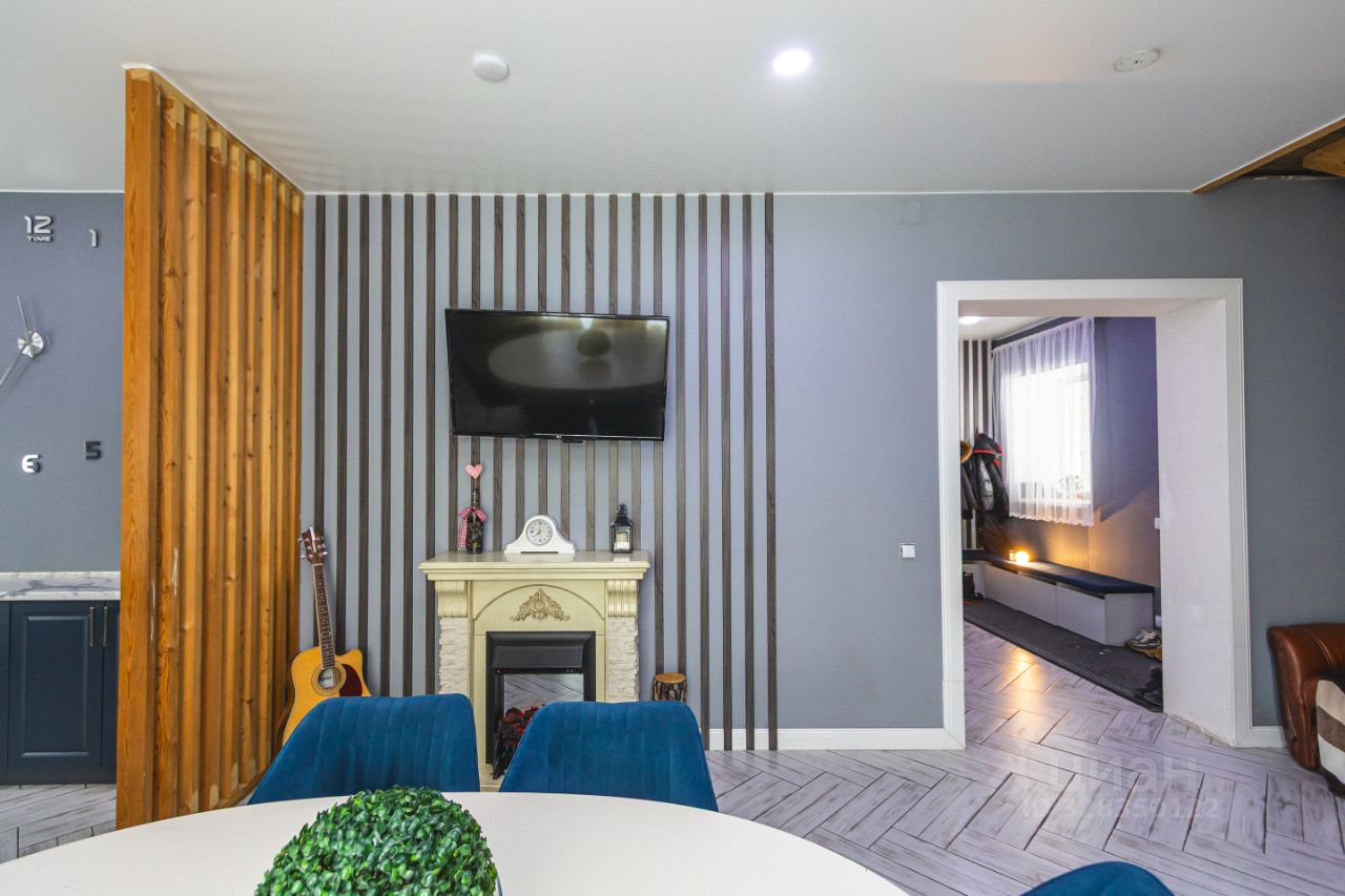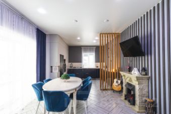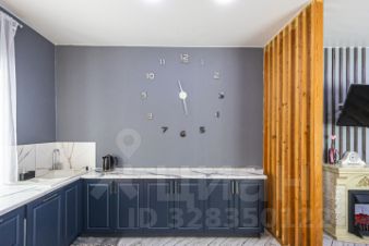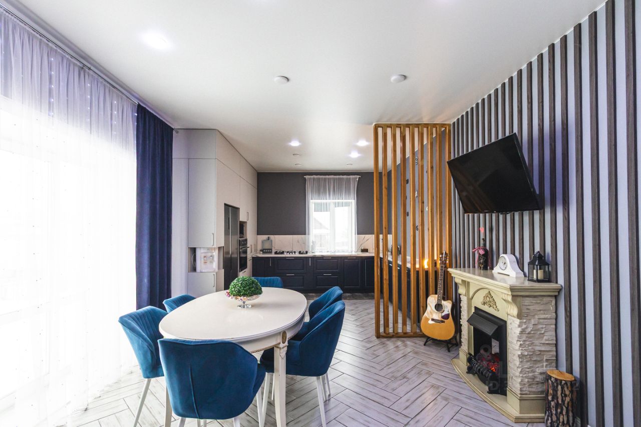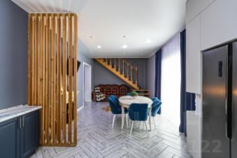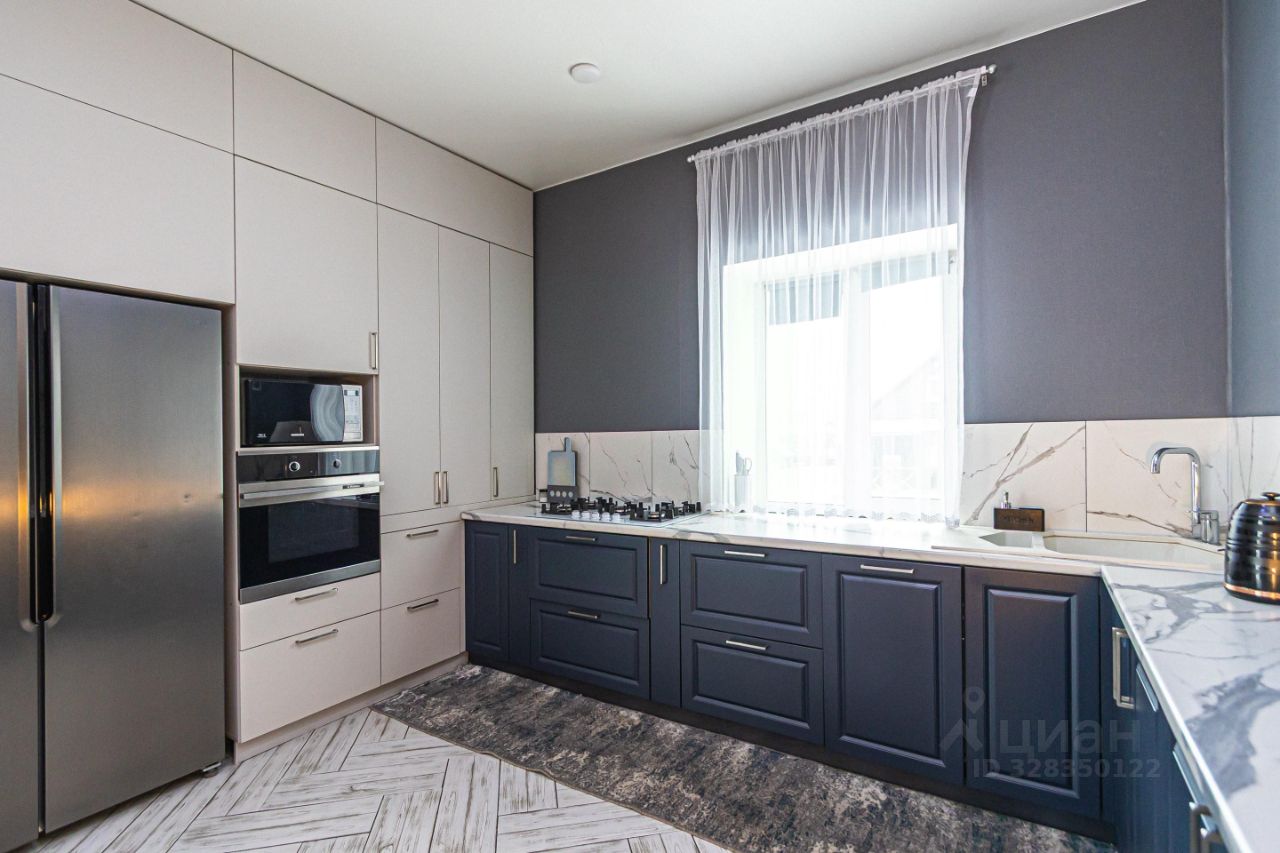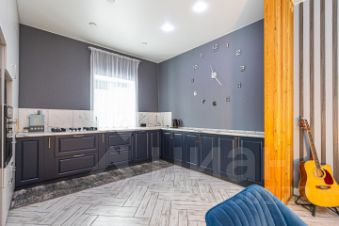 Здесь предусмотрено всё: большая кухня гостиная, где можно собираться большой семьей и с друзьями, с выходом на улицу, а там уже оборудована площадка под банный чан. Большая кухонный гарнитур, в котором каждый ящик удобно использовать, всё необходимое под рукой.