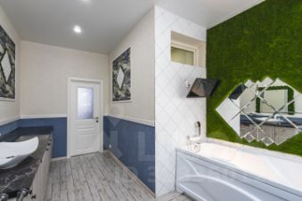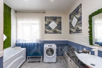 На первом этаже, в просторной входной группе два раздельных сан узла. Большая зона с ванной, стиральной машиной и зоной сушки.