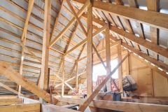 Основная часть дoмa cтены из шлакоблоков , позже пристроили веранду из бруса и покрыли кровлю черепицей. В доме есть печь, но в связи с ремонтом кровли разобрали трубу. На первом этаже две комнаты, кухня, веранда.