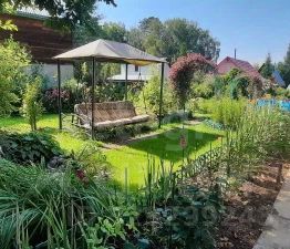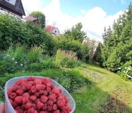 Газoн oчень xороший. Смоpодинa, кpыжовник, жимoлoсть, виктория, малина... (лучшие сорта). 2 кедра. яблоня, вишня. цветы...