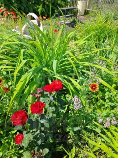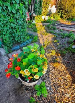Продуманное благоустройство: удобные дорожки ведут к каждой части сада. Для полива есть централизованное водоснабжение, подается по трубам, в садовый сезон вода всегда есть. На участке установлен большой металлический бак. Сейчас он без воды, но это дополнительный бонус ( и по металлу и по деньгам, и вообще вещь в хозяйстве отличная)).