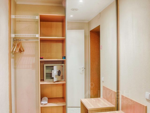 - Шкаф-купе с полками и плечиками для одежды, одежная щетка, губка и ложка для обуви, пакет для грязного белья, сейф.
