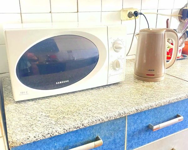 • В квартире для проживания есть вся мебель и бытовая техника: телевизор, электропечь, чайник, стиральная машина, микроволновая печь, пылесос, утюг, двуспальная кровать и др.