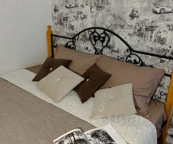 В квартире одна большая двуспальная кровать — для одного гостя или пары, которая любит спать не на разных планетах, а на одной орбите. Диван есть, но он честно декоративный, не раскладывается — он для красивых фото и уютных посиделок, а не для третьего спального места.