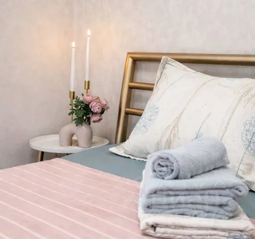 Постельное бельё, полотенца для каждого гостя, одноразовые тапочки.