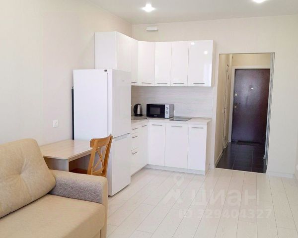 Сдаётся светлая студия с современным ремонтом в доме 2024 года постройки. При ремонте было сделано зонирование кухни и спальни. В квартире никто не жил. После ремонта была клининговая уборка. Просторная кухня оборудована всей необходимой техникой: холодильник, плита, вытяжка и чайник. В комнате установлен телевизор и шкафы для хранения вещей. В квартире запрещено курение. Дом оснащён пассажирским лифтом и открытой парковкой во дворе. В шаговой доступности находятся транспортные узлы и магазины.