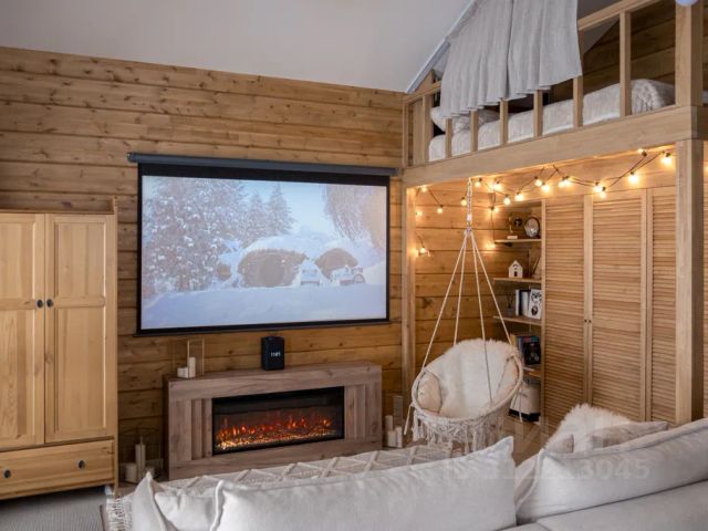 В гео куполе 1 комната с большим панорамным окном и видом на лес и ночные звёзды. Температура внутри - комфортная, постоянно поддерживается благодаря тёплому полу и камину (температуру можно регулировать). Также имеется парковка и освещённая мангальная зона с решёткой для жарки мяса.
