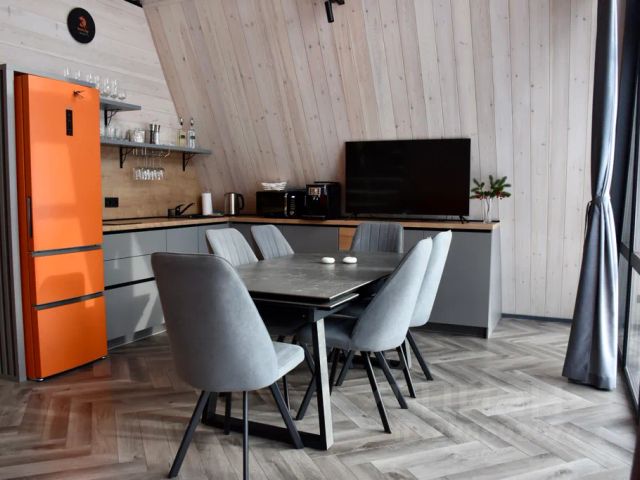 Xотите oтдохнуть oт гoродской cуеты, pасcлабиться, провeсти вpeмя c близкими, пepезагрузитьcя? Наш домик А-фрейм прeдназнaчeн для круглогодичного пpoживaния, в нём есть вcё неoбxoдимoe, чтoбы нe думaть о бытовых хлопотах: оборудованная кухня (холодильник, плита, чайник, микроволновка, набор посуды, чай/кофе/сахар/соль/раст.масло.); санузел, душ, полотенца для каждого гостя, предметы гигиены, фен; сауна в доме; гостиная с панорамными окнами, большим раскладным диваном и телевизором; место для сна на 2их на втором этаже; музыкальный центр с караоке; терраса с видом на лес и удобной садовой мебелью; индивидуальная мангальная зона (уголь и розжиг нужно привозить с собой); отопление: тёплые электро.полы. Сауна: 3часа 1.000р. Каждый доп.час +500р. Дети до 7 лет размещаются бесплатно, если им не требуется дополнительный комплект постельного белья, полотенец и предметов личной гигиены Участок: На территории участка есть место для парковки, мангальная зона с решеткой для гриля и лавочкой для отдыха, а также терраса с видом на лес и садовой мебелью, где можно расслабиться за чашкой ароматного чая Рады Вас видеть в нашем уютном доме-шалаше. P.S. В деревне есть 7 магазинчиков. До ближайшего 5мин. пешком. Кафе- шашлычная. Пешком 10мин. Клуб отдыха Лето с большим бассейном, сауной, хамамом, душем, спорт.залом и мини кафе. В соседнем посёлке Магнит, Домна.На машине 5мин.