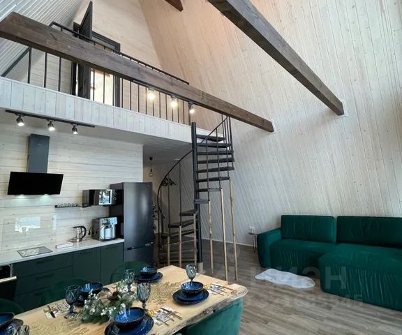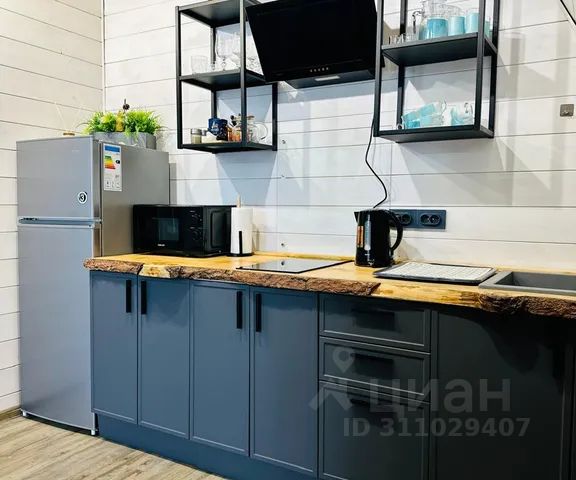 ( холодильник, индукционная плита, духовой шкаф, посудомоечная машина, капсулы для машинки, микроволновая печь, чайник и вся необходимая посуда для приготовления еды). Большой обеденный стол выполнен из из деревянного слэба, так же есть мангал, решетка, казан.